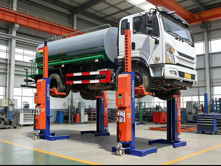 Safety Synchronization Control: Lifting special vehicles places extremely high demands on synchronization. TFAUTENF's microcomputer-controlled synchronous system ensures millimeter-precise synchronous lifting and lowering across all posts, absolutely preventing vehicle twisting during the operation—a critical factor for vehicles with pressure vessels like tanks.